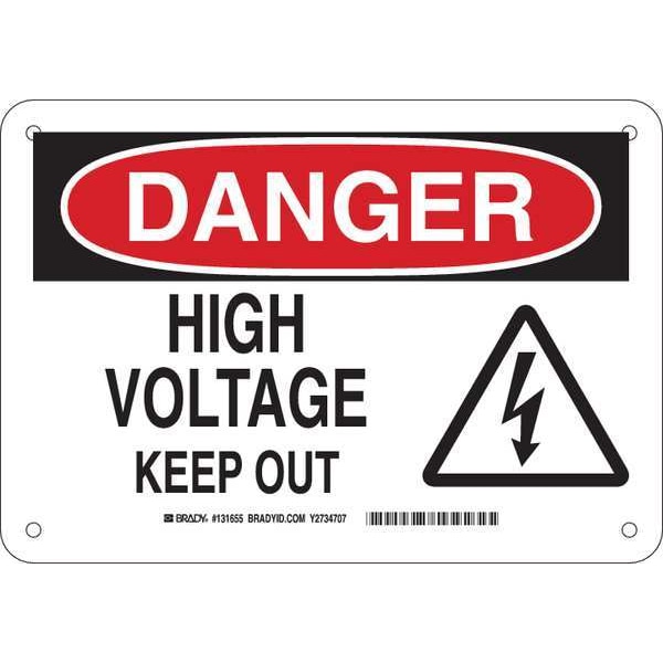 Danger Sign, Sign Subject Matter Electrical Hazard, Height 7 in, Width 10 in, Sign Material Aluminum, Sign Mounting Style With Mounting Holes, Header Danger, Legend High Voltage Keep Out, Printed Language English, Sign Shape Rectangle