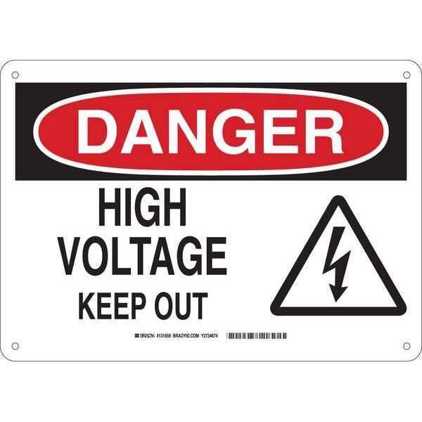 Danger Sign, Sign Subject Matter Electrical Hazard, Height 7 in, Width 10 in, Sign Material Aluminum, Sign Mounting Style With Mounting Holes, Header Danger, Legend High Voltage Keep Out, Printed Language English, Sign Shape Rectangle