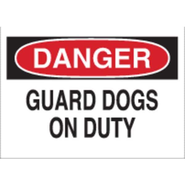Danger Sign, Sign Subject Matter Trespassing and Property, Height 7 in, Width 10 in, Sign Material Aluminum, Sign Mounting Style With Mounting Holes, Header Danger, Legend Guard Dogs On Duty, Printed Language English, Sign Shape Rectangle