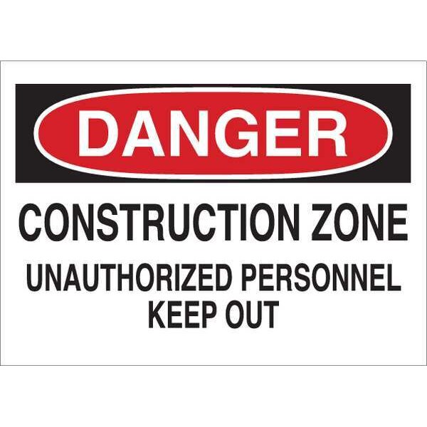 Danger Sign, Sign Subject Matter Construction, Height 7 in, Width 10 in, Sign Material Fiberglass, Sign Mounting Style With Mounting Holes, Header Danger, Legend Construction Zone Unauthorized Personnel Keep Out, Printed Language English, Sign Shape Rectangle