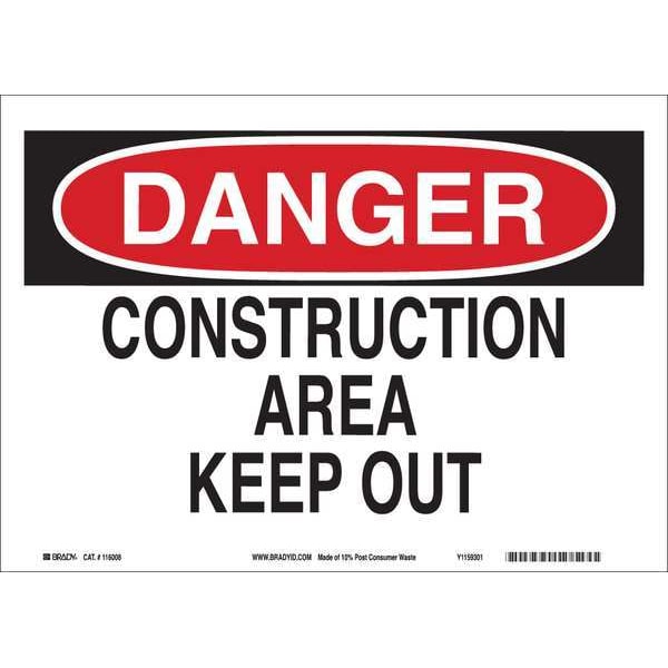 Danger Sign, 7 in Height, 10 in Width, Plastic, Rectangle, English