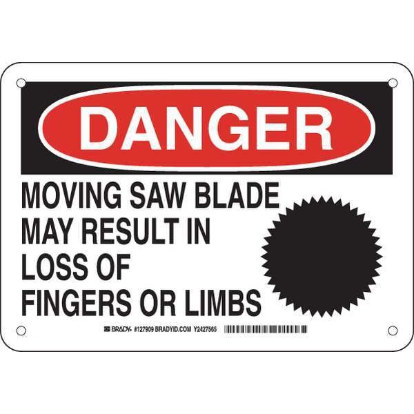 Danger Sign, Sign Subject Matter Keep Hands Clear, Height 7 in, Width 10 in, Sign Material Plastic, Sign Mounting Style With Mounting Holes, Header Danger, Legend Moving Saw Blade May Result In Loss of Fingers Or Limbs, Printed Language English, Sign Shape Rectangle