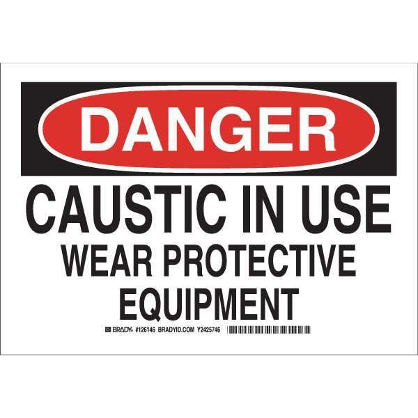 Danger Sign, Sign Subject Matter Personal Protection, Height 7 in, Width 10 in, Sign Material Polyester, Sign Mounting Style Adhesive Surface, Header Danger, Legend Caustic In Use Wear Protective Equipment, Printed Language English, Sign Shape Rectangle
