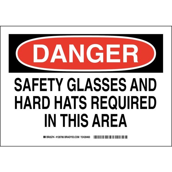 Danger Sign, Sign Subject Matter Personal Protection, Height 7 in, Width 10 in, Sign Material Polyester, Sign Mounting Style Adhesive Surface, Header Danger, Legend Safety Glasses And Hard Hats Required In This Area, Printed Language English, Sign Shape Rectangle