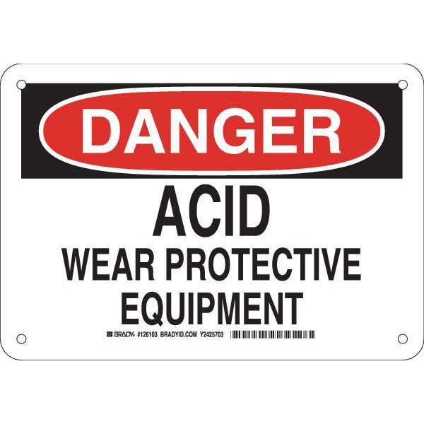Danger Sign, Sign Subject Matter Personal Protection, Height 7 in, Width 10 in, Sign Material Plastic, Sign Mounting Style With Mounting Holes, Header Danger, Legend Acid Wear Protective Equipment, Printed Language English, Sign Shape Rectangle
