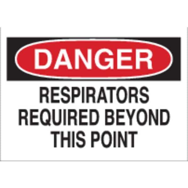 Danger Sign, Sign Subject Matter Personal Protection, Height 7 in, Width 10 in, Sign Material Aluminum, Sign Mounting Style With Mounting Holes, Header Danger, Legend Respirators Required Beyond This Point, Printed Language English, Sign Shape Rectangle