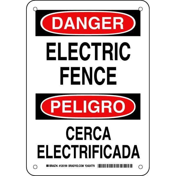 Danger Sign, Sign Subject Matter Electrical Hazard, Height 10 in, Width 7 in, Sign Material Aluminum, Sign Mounting Style With Mounting Holes, Header Danger/Peligro, Legend Electric Fence/Cerca Electrificada, Printed Language English, Spanish, Sign Shape Rectangle