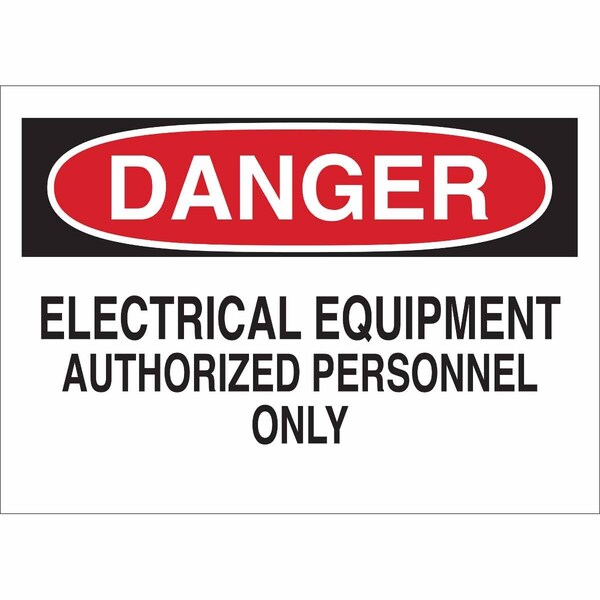 Danger Sign, Sign Subject Matter Electrical Hazard, Height 7 in, Width 10 in, Sign Material Fiberglass, Sign Mounting Style With Mounting Holes, Header Danger, Legend Electrical Equipment Authorized Personnel Only, Printed Language English, Sign Shape Rectangle