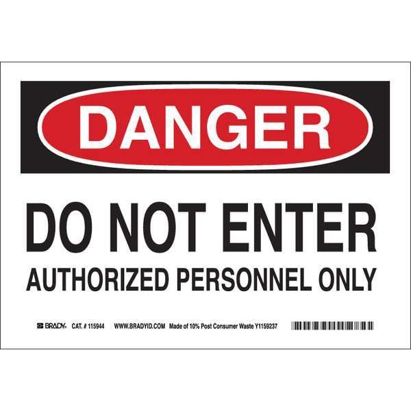 Danger Sign, Sign Subject Matter Authorized Personnel and Restricted Access, Height 7 in, Width 10 in, Sign Material Plastic, Sign Mounting Style With Mounting Holes, Header Danger, Legend Do Not Enter Authorized Personnel Only, Printed Language English, Sign Shape Rectangle