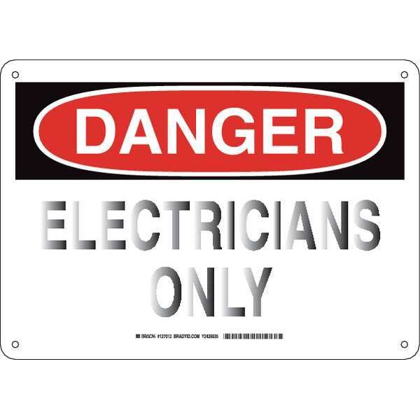 Danger Sign, Sign Subject Matter Electrical Hazard, Height 10 in, Width 14 in, Sign Material Plastic, Sign Mounting Style With Mounting Holes, Header Danger, Legend Electricians Only, Printed Language English, Sign Shape Rectangle