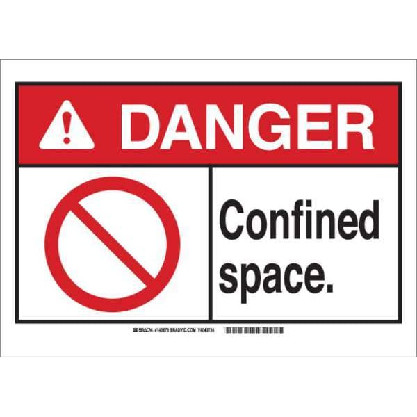 Danger Sign, Sign Subject Matter Confined Space, Height 10 in, Width 14 in, Sign Material Polyester, Sign Mounting Style Adhesive Surface, Header Danger, Legend Confined Space, Printed Language English, Sign Shape Rectangle