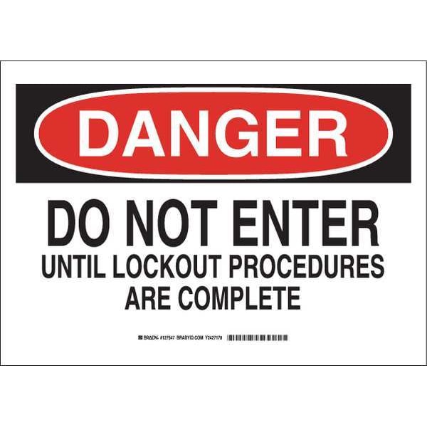 Danger Sign, Sign Subject Matter Lockout Tagout, Height 10 in, Width 14 in, Sign Material Polyester, Sign Mounting Style Adhesive Surface, Header Danger, Legend Do Not Enter Until Lockout Procedures Are Complete, Printed Language English, Sign Shape Rectangle