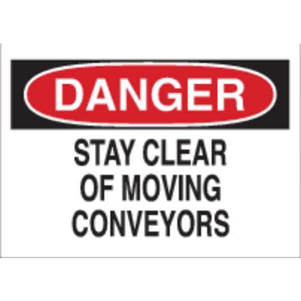 Danger Sign, Sign Subject Matter Conveyors, Height 7 In., Width 10 In., Sign Material Polyester, Sign Mounting Style Adhesive Surface, Header Danger, Legend Stay Clear Of Moving Conveyors, Printed Language English, Sign Shape Rectangle