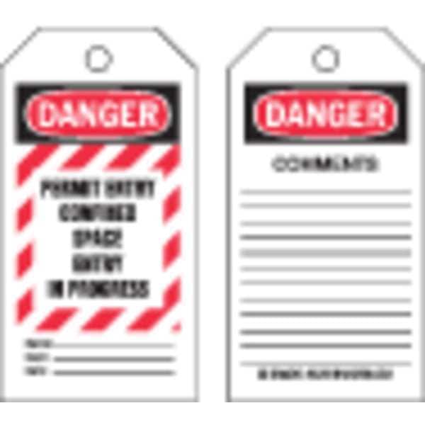 Danger Tag, 5 3/4 in H x 3 in W, Permit Entry Confined Space Entry In Progress