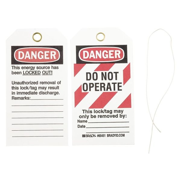 Danger Tag, Front Side Legend Danger Do Not Operate, Header Danger, Language English, Legend Type Text, Mount Type Cotton String, Number of Printed Sides 2, Overall Height 5 3/4 in, Overall Width 3 in, Reverse Side Legend This Energy Source is Locked Out, Sign Background Color White, Sign Material Paper, Sign Out Sections Date, Name, Remarks, Signage Type Tag, Write-On Surface Yes, For Location Indoor, For Use With Lockout Tagout, Grommet Material Metal, Header Background Color Black/Red/White