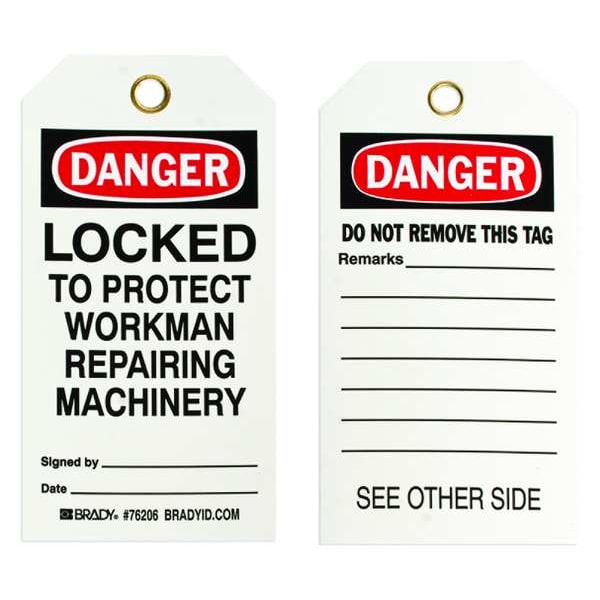 Danger Tag, Front Side Legend Locked Out Device, Header Danger, Language English, Legend Type Text, Mount Type Nylon Ties, Number of Printed Sides 2, Overall Height 5 3/4 in, Overall Width 3 in, Reverse Side Legend Do Not Remove Tag, Sign Background Color White, Sign Material Polyester, Sign Out Sections Remarks, Signage Type Tag, Write-On Surface Yes, For Location Outdoor, For Use With Lockout Tagout, Grommet Material Metal, Header Background Color Black/Red/White, Header Text Color White