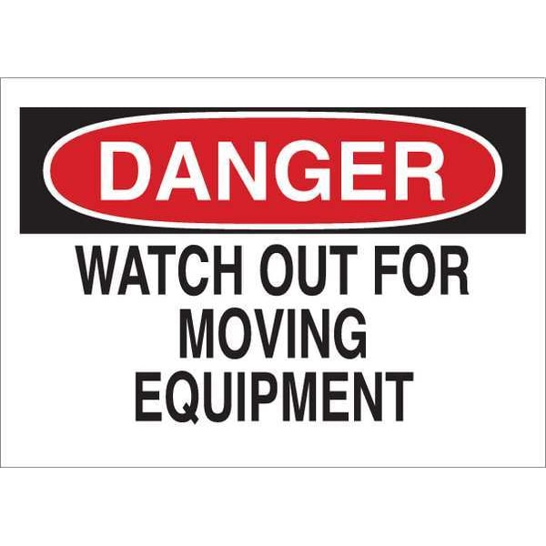 Danger Sign, Sign Subject Matter Machine and Operational, Height 7 In., Width 10 In., Sign Material Plastic, Sign Mounting Style With Mounting Holes, Header Danger, Legend Watch Out For Moving Equipment, Printed Language English, Sign Shape Rectangle