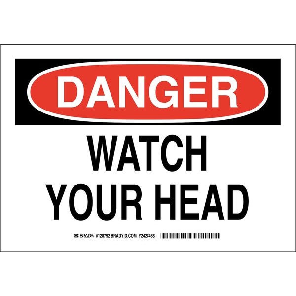 Danger Sign, Sign Subject Matter Overhead Clearance, Height 7 In., Width 10 In., Sign Material Polyester, Sign Mounting Style Adhesive Surface, Header Danger, Legend Watch Your Head, Printed Language English, Sign Shape Rectangle