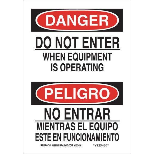 Danger/Peligro, Do Not Enter When Equipment Is Operating/No Entrar, 7" W x 10" H, Rectangle