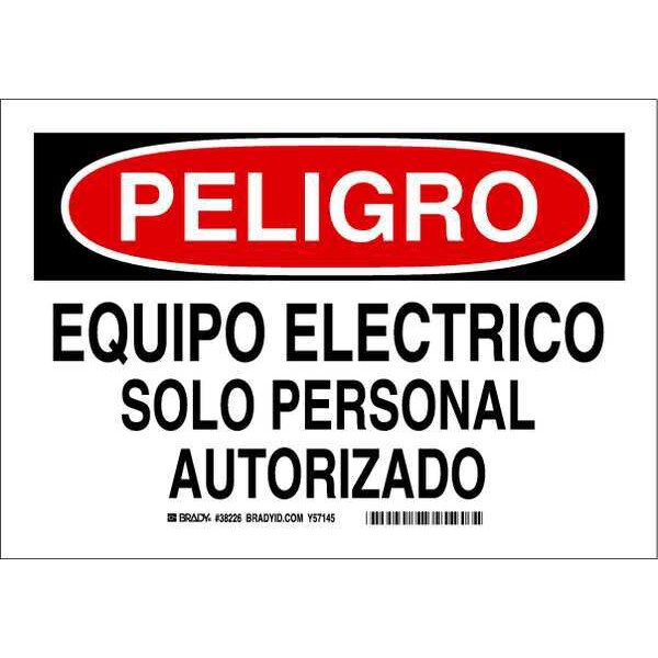 Danger/Peligro Sign, Sign Subject Matter Electrical Hazard, Height 10 in, Width 14 in, Sign Material Aluminum, Sign Mounting Style With Mounting Holes, Header Peligro, Legend Equipo Electrico Solo Personal Autorizado, Printed Language Spanish, Sign Shape Rectangle