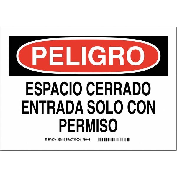 Danger/Peligro Sign, Sign Subject Matter Authorized Personnel and Restricted Access, Height 10 in, Width 14 in, Sign Material Plastic, Sign Mounting Style With Mounting Holes, Header Peligro, Legend Espacio Cerrado Entrada Solo Con Permiso, Printed Language Spanish, Sign Shape Rectangle