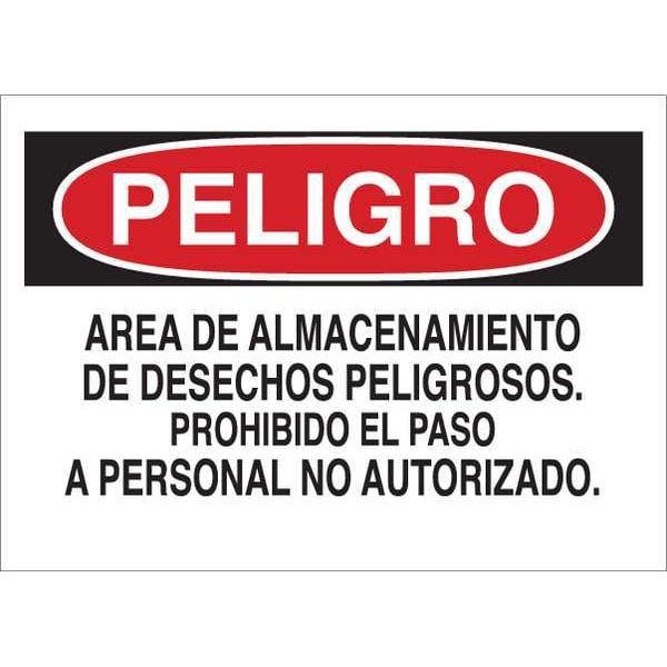 Danger/Peligro Sign, Sign Subject Matter Chemical, Gas or Hazardous Materials, Height 7 in, Width 10 in, Sign Material Plastic, Sign Mounting Style With Mounting Holes, Header Peligro, Legend Area De Almacenamiento De Desechos Peligrosos. Prohibido El Paso A Personal No Autorizado, Printed Language Spanish, Sign Shape Rectangle