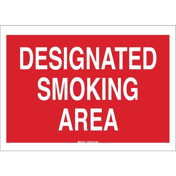Smoking Area Sign, Sign Subject Matter No Smoking, Height 7 in, Width 10 in, Sign Material Polyester, Sign Mounting Style Adhesive Surface, Header No Header, Legend Designated Smoking Area, Printed Language English, Sign Shape Rectangle