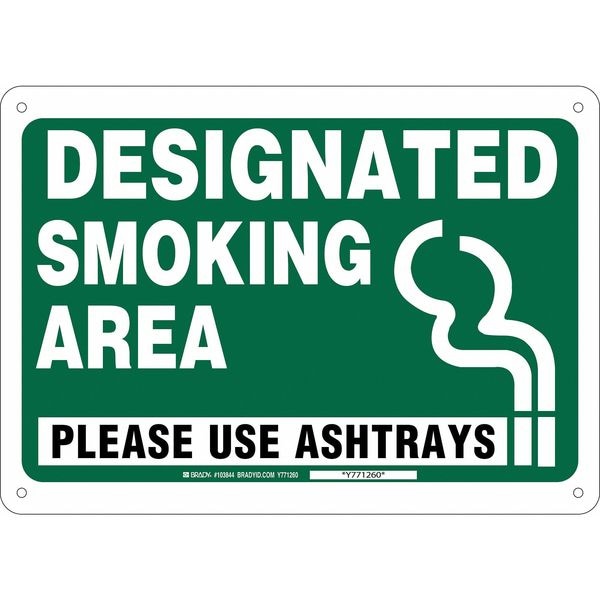 Smoking Area Sign, Sign Subject Matter No Smoking, Height 14 in, Width 10 in, Sign Material Plastic, Sign Mounting Style With Mounting Holes, Header No Header, Legend Designated Smoking Area Please Use Ashtrays, Printed Language English, Sign Shape Rectangle