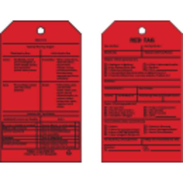 Tag, Compatible Tag Holder Mfr Part Number Not Applicable, Compatible Tag Insert Mfr Part Number Not Applicable, Fastener Attachment Length 12 in, Fastener Type String, Header Wording (Reverse Side) No Header, Header Wording Red Tag, Height 7 in, Indoor/Outdoor Usage Indoor, Lamination Type Not Laminated, Language English, Mounting Hole Reinforcement Type Metal, Number of Tags 100, Preprinted Images (Reverse Side) Not Applicable, Preprinted Images Not Applicable
