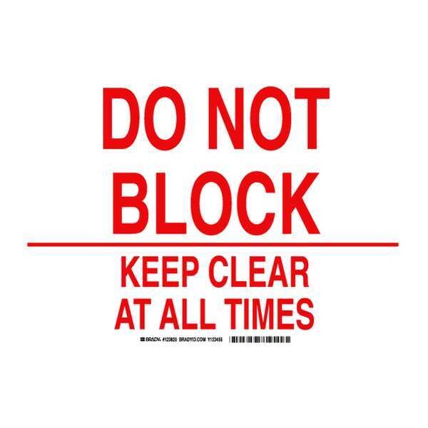 Do Not Block Keep Clear At All Times, 14" W x 10" H, Rectangle, Polyester, 123820