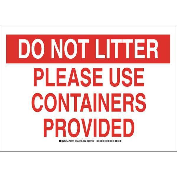 Facility Sign, Sign Subject Matter Cleaning and Maintenance, Height 10 In., Width 14 In., Sign Material Polyester, Sign Mounting Style Adhesive Surface, Header Do Not Litter, Legend Please Use Containers Provided, Printed Language English, Sign Shape Rectangle