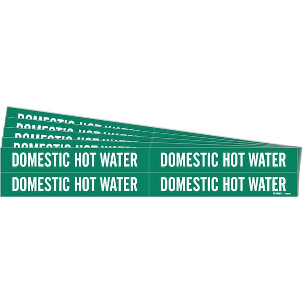 DOMESTIC HOT WATER Pipe Marker Style 4 Polyester White on Green 4 per Card, 5 PK