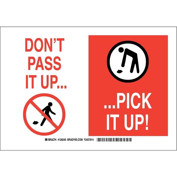 Facility Sign, Sign Subject Matter Cleaning and Maintenance, Height 7 In., Width 10 In., Sign Material Polyester, Sign Mounting Style Adhesive Surface, Header No Header, Legend Don't Pass It Up... Pick It Up, Printed Language English, Sign Shape Rectangle