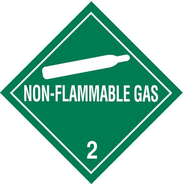 DOT Container Label, Language English, Container Label/Placard Type Hazardous Class, Hazard Class Class 2 (Gases), DOT/UN Product Form Label, Message Non-Flammable Gas, Label Width 4 in, Label Height 4 in, Material Vinyl, Package Quantity 500