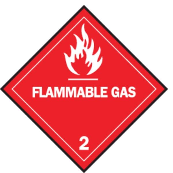 DOT Container Label, Language English, Container Label/Placard Type Hazardous Class, Hazard Class Class 2 (Gases), DOT/UN Product Form Label, Message Flammable Gas, Label Width 4 in, Label Height 4 in, Material Vinyl, Package Quantity 500