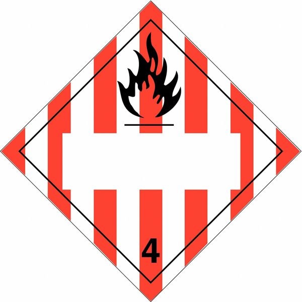 DOT Container Placard, Language English, Container Label/Placard Type Hazardous Class, Hazard Class Class 4 (Flammable Solids), DOT/UN Product Form Placard, Message 4, Label Width 10 3/4 in, Label Height 10 3/4 in, Material B-946 Pressure Sensitive Vinyl