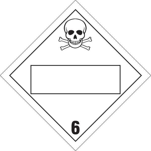 DOT Container Placard, Language English, Container Label/Placard Type Hazardous Class, Hazard Class Class 6 (Poisonous/Toxic and Infectious Substance), DOT/UN Product Form Placard, Message 6, Label Width 10 3/4 in, Label Height 10 3/4 in, Material B-946 Pressure Sensitive Vinyl