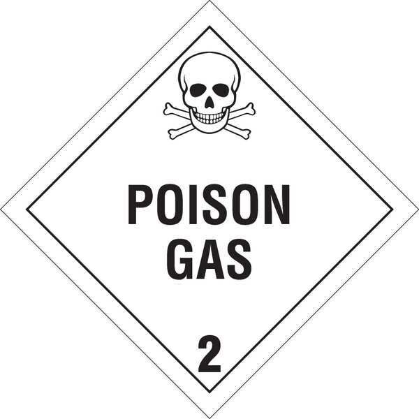 DOT Container Placard, Language English, Container Label/Placard Type Hazardous Class, Hazard Class Class 2 (Gases), DOT/UN Product Form Placard, Message Poison Gas 2, Label Width 10 3/4 in, Label Height 10 3/4 in, Material B-101 Polycoated Tagstock