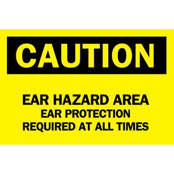 Caution Sign, Sign Subject Matter Personal Protection, Height 7 in, Width 10 in, Sign Material Polyester, Header Caution, Legend Ear Hazard Area Ear Protection Required At All Times, Printed Language English, Sign Shape Rectangle