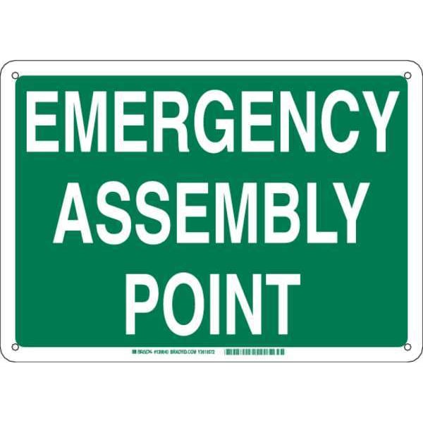 Emergency Assembly Sign, Sign Subject Matter Evacuation, Assembly or Shelter, Height 14 in, Width 20 in, Sign Material Plastic, Sign Mounting Style With Mounting Holes, Header No Header, Legend Emergency Assembly Point, Printed Language English, Sign Shape Rectangle