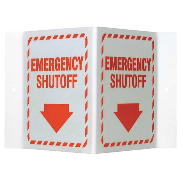 Safety Sign, Sign Subject Matter Facility, Height 6 In., Width 9 In., Sign Material Acrylic, Sign Mounting Style With Mounting Holes, Header No Header, Legend Emergency Shutoff, Printed Language English, Sign Shape Rectangle