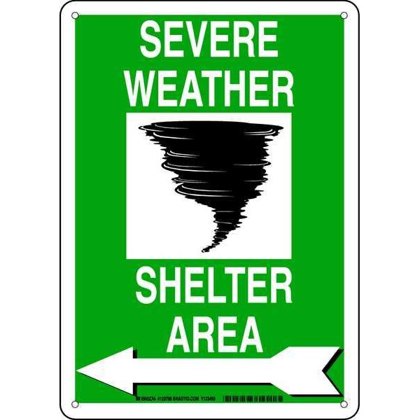 Emergency Sign, Sign Subject Matter Evacuation, Assembly or Shelter, Height 10 in, Width 7 in, Sign Material Plastic, Sign Mounting Style With Mounting Holes, Header No Header, Legend Severe Weather, Printed Language English, Sign Shape Rectangle