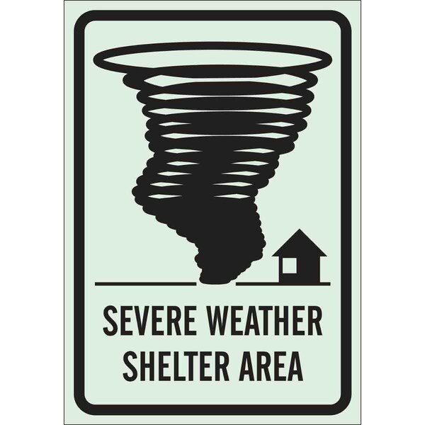 Emergency Sign, Sign Subject Matter Evacuation, Assembly or Shelter, Height 14 in, Width 10 in, Sign Material Plastic, Sign Mounting Style With Mounting Holes, Header No Header, Legend Severe Weather Shelter Area, Printed Language English, Sign Shape Rectangle