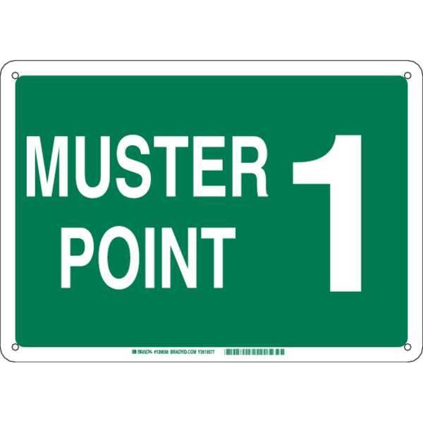 Emergency Assembly Sign, Sign Subject Matter Evacuation, Assembly or Shelter, Height 10 in, Width 14 in, Sign Material Plastic, Sign Mounting Style With Mounting Holes, Header No Header, Legend Muster Point 1, Printed Language English, Sign Shape Rectangle