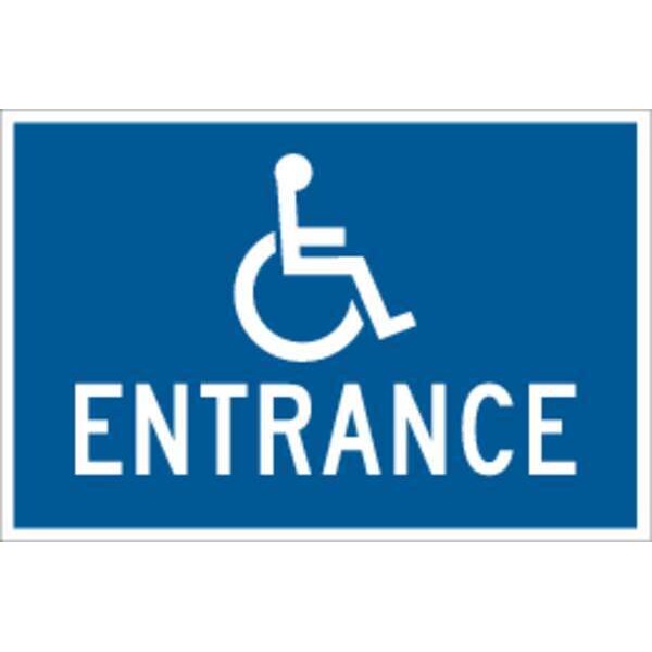 Handicap Entrance Sign, Sign Subject Matter Exit and Entrance, Height 14 In., Width 10 In., Sign Material Polyester, Sign Mounting Style Adhesive Surface, Header No Header, Legend Entrance, Printed Language English, Sign Shape Rectangle