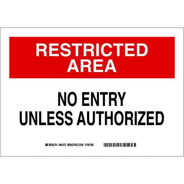 Entrance Sign, Sign Subject Matter Exit and Entrance, Height 10 In., Width 14 In., Sign Material Plastic, Sign Mounting Style With Mounting Holes, Header Restricted Area, Legend No Entry Unless Authorized, Printed Language English, Sign Shape Rectangle