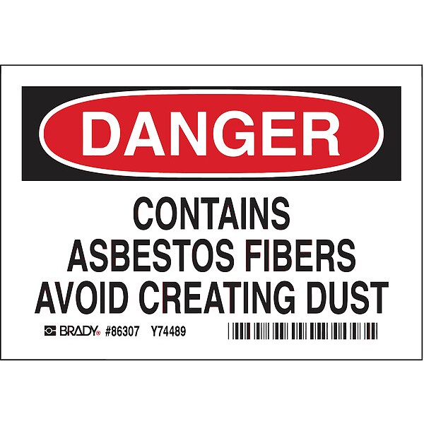 Equipment Label, Horizontal Rectangle, Number of Printed Sides 1, English, Sign Legend Contains Asbestos Fibers Avoid Creating Dust, Sign Legend Style Text, Package Quantity 5