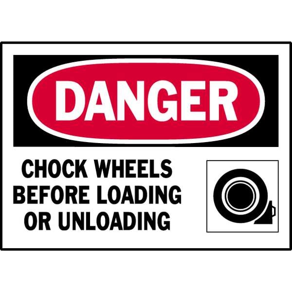 Equipment Label, Horizontal Rectangle, Number of Printed Sides 1, English, Sign Legend Chock Wheels Before Loading Or Unloading, Sign Legend Style Text, Package Quantity 5