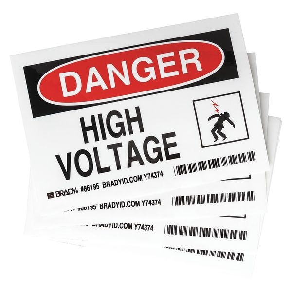 Equipment Label, Horizontal Rectangle, Number of Printed Sides 1, English, Sign Legend HIGH VOLTAGE, Sign Legend Style Text, Package Quantity 5