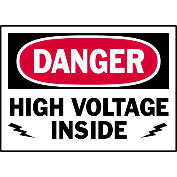 Equipment Label, Horizontal Rectangle, Number of Printed Sides 1, English, Sign Legend HIGH VOLTAGE INSIDE, Sign Legend Style Text, Package Quantity 5